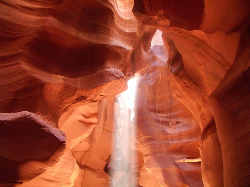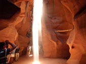 L'Upper Canyon est plus souvent le lieu ou apparaissent des "beams", rayons de lumière que les guides Navajos se font un plaisir d'accentuer en lançant du sable au travers des rayons du soleil, donnant ainsi l'impression que les rayons transperçent le canyon. Vision superbe et presque divine :-)