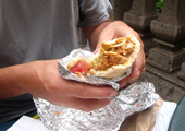 Un sandwich acheté dans la rue comme par exemple à New York dans les stands au coins des rues. |