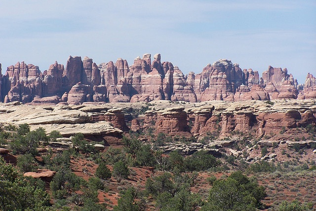 The Needles, au sud, situé à 220 kilomètres par route de Island in the Sky. Cette partie fut ainsi nommée pour ses colonnes massives de grès blanc que l’érosion a taillées et