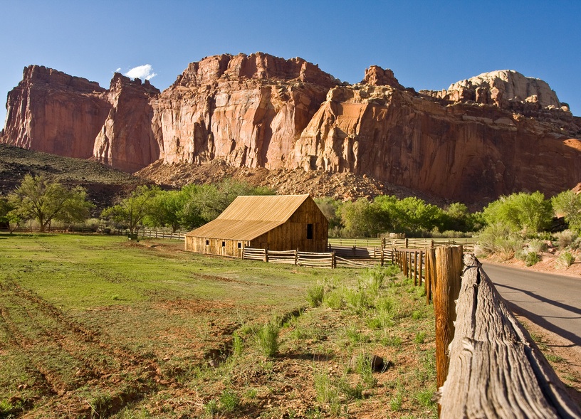 Au centre, profitez du site de Fruita, petite ville qui abrite plus de 2500 arbres fruitiers (d’où son nom), à l’origine plantés par les Mormons. Il ne reste pas grand chose du village original, si ce n’est pas petite école, conservée en l’état, mais l'endroit, verdoyant, est extrêmement agréable et vous pourrez visiter à pieds les sites principaux.