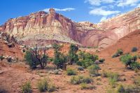 Capitol Reef doit son nom à la chaîne de falaises abruptes longue de 160 km qui traverse le parc. Elle rappelait aux pionniers les capitoles de leurs grandes villes (avec de l'imagination). Moins célèbre que ses voisins, cette grande étendue semi-aride, hachée et chaotique, est traversée par une barrière naturelle (reef) longue de 160 km. Ce parc est en effet recouvert de monuments rocheux aux nuances multiples, taillés par l’histoire géologique.Dômes imposants, monolithes, arches, canyons et falaises de grès s’élèvent de terre et composent un gigantesque jardin de pierre, qui s’étend sur plus de 978 kilomètres carré.