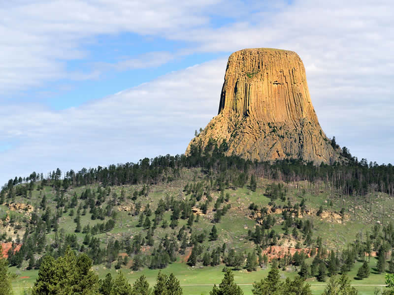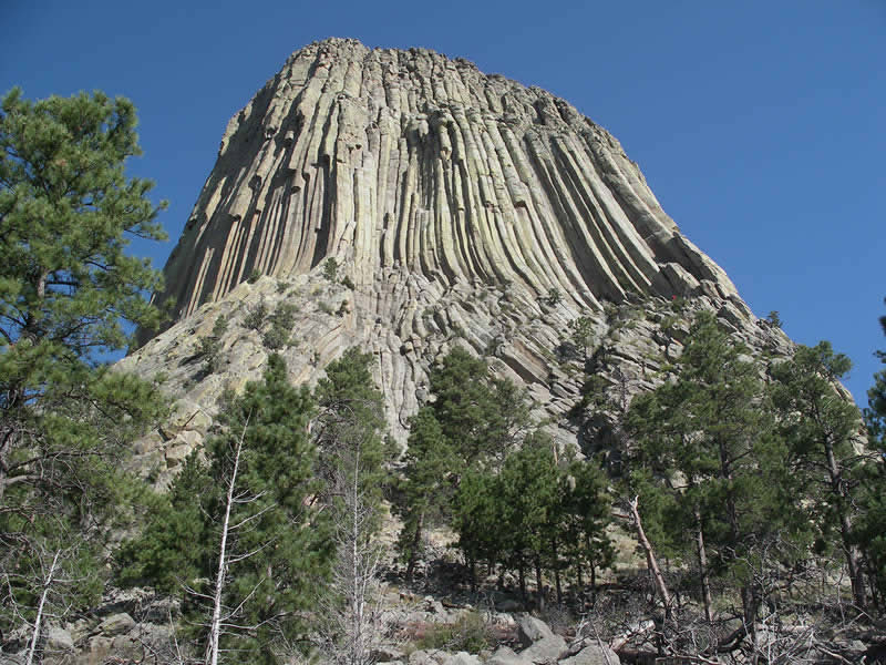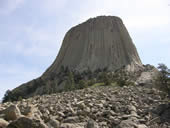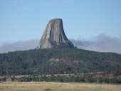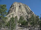 La volcanique tour du diable.Cet éperon volcanique de 400 mètres de haut est un monolithe qui se dresse depuis 65 millions d'années dans les Blacks Hills à coté de la River Belle Fourche, de quoi penser que cet endroit du Wyoming est bien habité par le Diable