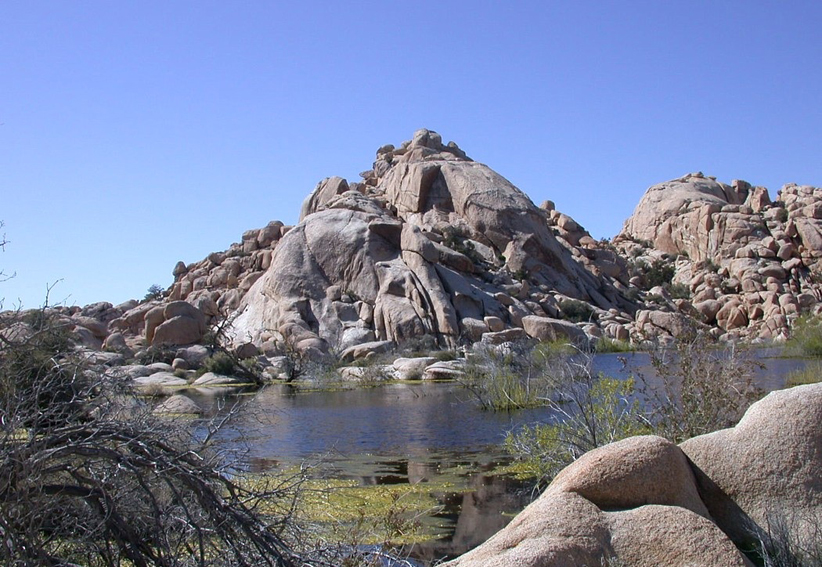 cependant quelques chèvres, écureuils, rats kangourous, pumas, mais aussi, quelques coyotes qui animent les nuits en hurlant à la mort - charmant... et si vous êtes chanceux, vous tomberez un mouflon d’Amérique ou une tortue du désert !Mais il ne faut pas que cette description vous rebute, car même si vous n'êtes pas nostalgique des années 70 ou si l’environnement désertique paraît monotone, Joshua Tree mérite une visite. C’est en effet un fabuleux site pour randonner (mais pas en plein été), faire de l'escalde, mais aussi pour admirer les multiples espèces d’oiseaux et des panoramas splendides, car outre ce désert, vous y trouverez en effet quelques paysages plus inattendus :