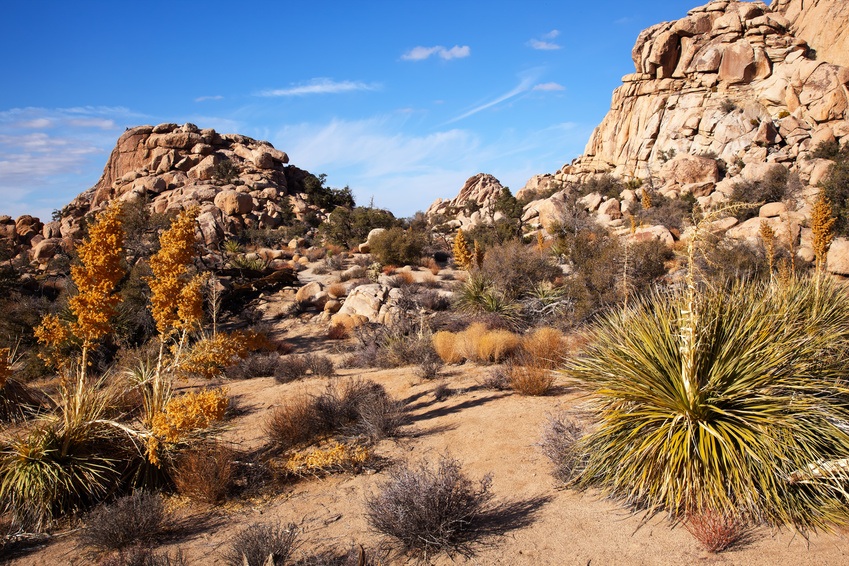 - D’un côté le désert des Mojaves, au nord du parc. C’est dans cette partie que vous trouverez les fameux Joshua trees, espèce que vous ne trouverez qu’ici. Au nord-ouest, le paysage est fait de collines rocailleuses, vides de végétation. C’est devenu une destination populaire pour l’escalade. On y trouve de fabuleuses formations rocheuses, comme les Giant marbles.