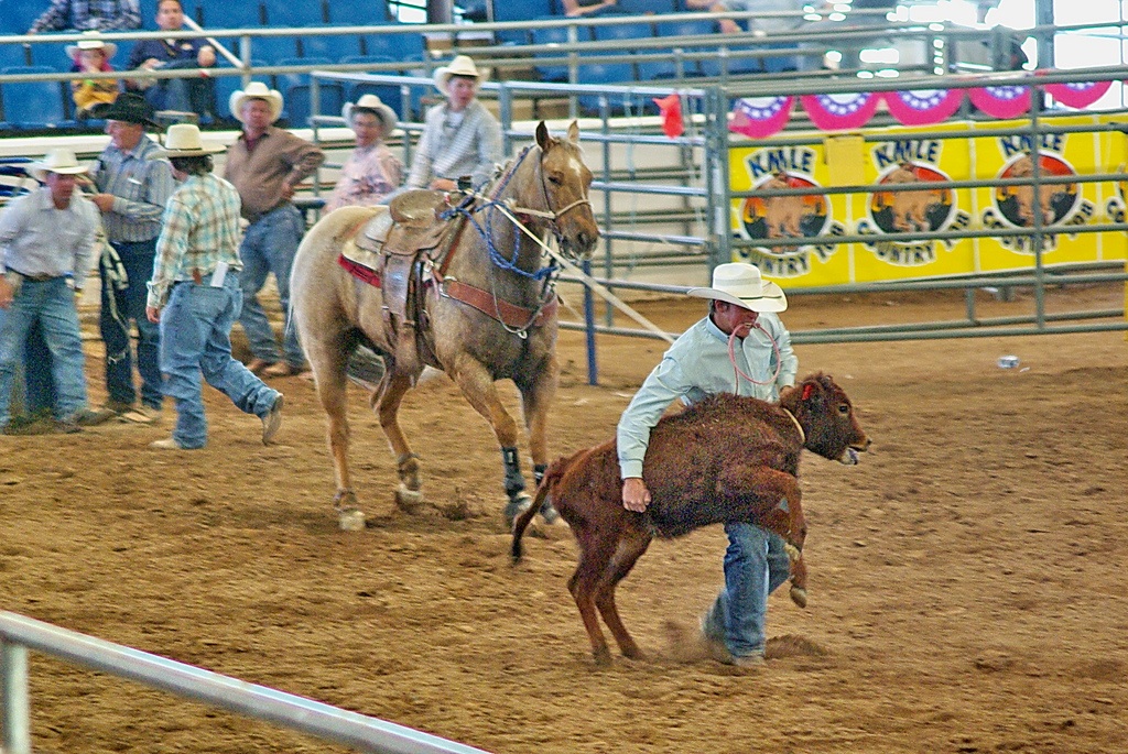 Steer wrestling : capture du taureau. Le cowboy n’utilise pas de corde dans cette épreuve et est secondé par un assistant, dont la mission est de prévoir les réactions du taureau (tâche peu aisée s’il en est). Lorsque le taureau est lâché, le concurrent s’élance sur son cheval et doit sauter de sa monture pour « lutter » avec un boeuf et le mettre à terre en l’attrapant par les cornes.Tie-down roping : capture d’un veau au lasso. Le cowboy doit passer le lasso autour du cou ou autour de la tête et d’une corne du veau, puis l’attacher. Le veau doit rester attaché au moins six secondes autour du cou, sinon, le concurrent est disqualifié.